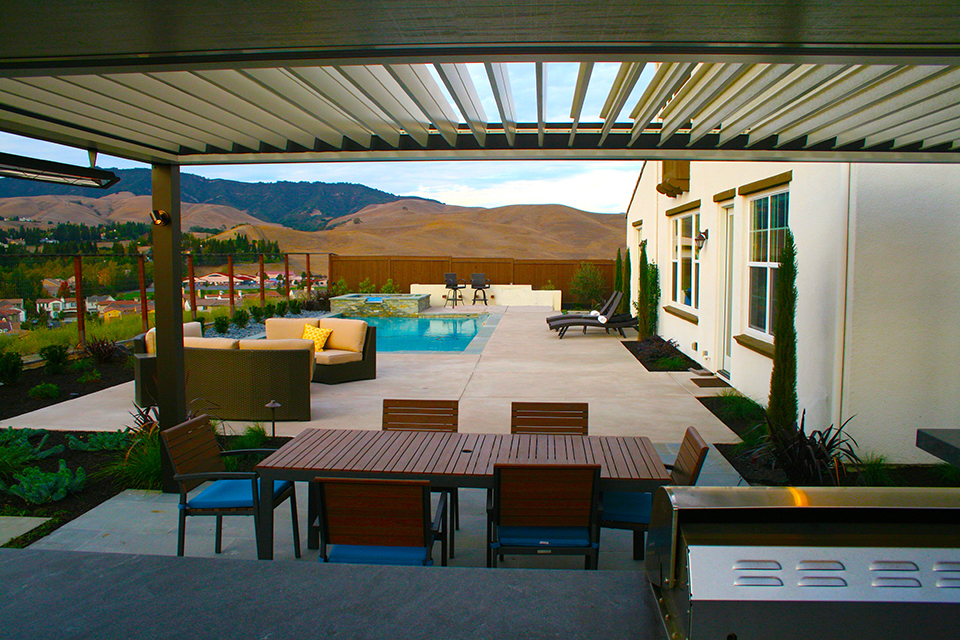 The Apollo Opening Roof is an innovative solution for Commercial and Residential outdoor living and dining areas. The Apollo Opening Roof is a unique system that provides protection from the rain, while allowing the flexibility of variable shading and light. By opening the louvers slightly heat escapes, allowing natural ventilation and additional cooling. In the cooler months open the Apollo louvers for direct light to increase solar heat and brighten interior spaces.